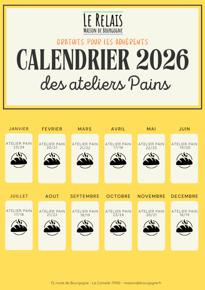 En octobre 2021, nous avons semé du blé sur 1/2 ha. C’est de ce blé qu’est née la farine du Relais : 100% locale, moulue à la demande sur meule de pierre de la minoterie Carnat à Neuvy-Grandchamp.