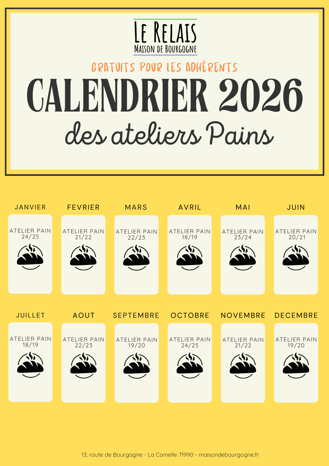 Calendrier des ateliers Pains 2026